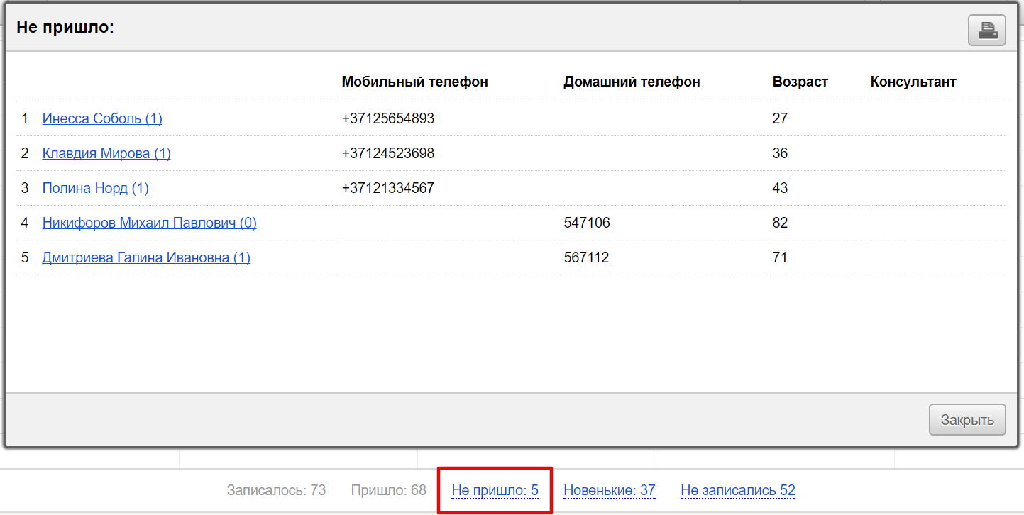 Будьте в курсе клиентов которые записались, но не пришли. Эта информация отобразится в нижней части страницы “Запись”.